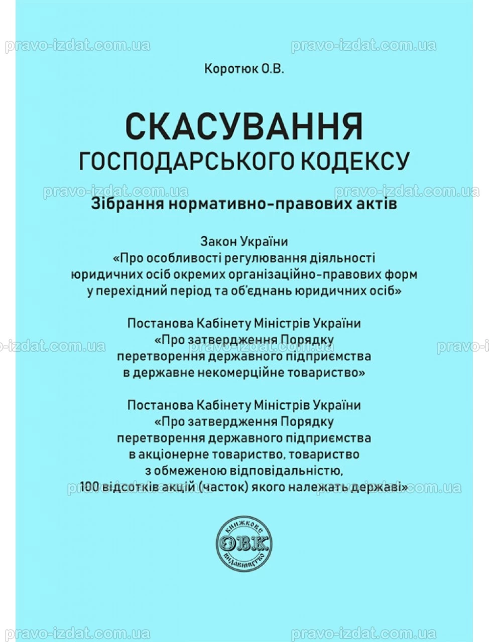 Замовте Скасування господарського кодексу: зібрання нормативно-правових актів у Маріуполі, Слов'янську, Краматорську. Доставка зручною для Вас поштовою службою в Чернігів, Черкаси, Луцьк і Тернопіль – після оформлення замовлення наш менеджер зв’яжеться з Вами для підтвердження замовлення та даст відповіді на питання стосовно оплати та доставки.