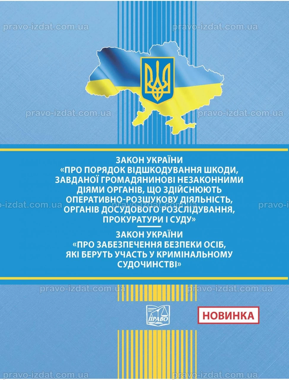 Замовте Закон України "Про порядок відшкод-ня шкоди, завданої громад-ві незакон. діями орг., що здійснюють ОРД, органів досудового розслідування, прокуратури і суду". ЗУ "Про забезпеч. безпеки осіб, які беруть участь у крим. судочинстві" у Маріуполі, Слов'янську, Краматорську. Доставка зручною для Вас поштовою службою в Чернігів, Черкаси, Луцьк і Тернопіль – після оформлення замовлення наш менеджер зв’яжеться з Вами для підтвердження замовлення та даст відповіді на питання стосовно оплати та доставки.