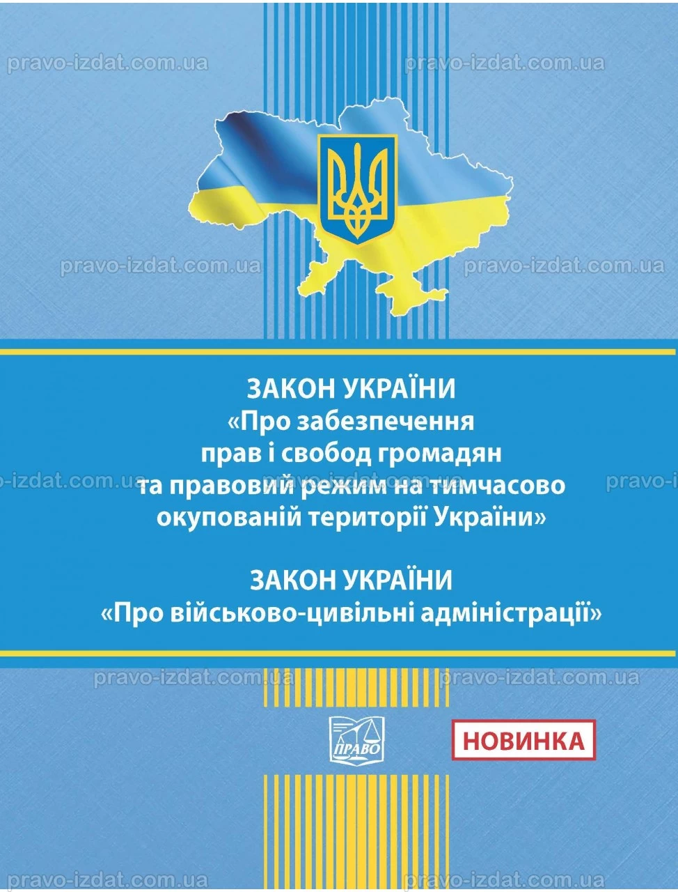 Замовте ЗУ "Про забезпеч. прав і свобод громадян та правовий режим на тимчас. окупованій території У". ЗУ "Про військово-цивільні адміністрації" у Маріуполі, Слов'янську, Краматорську. Доставка зручною для Вас поштовою службою в Чернігів, Черкаси, Луцьк і Тернопіль – після оформлення замовлення наш менеджер зв’яжеться з Вами для підтвердження замовлення та даст відповіді на питання стосовно оплати та доставки.