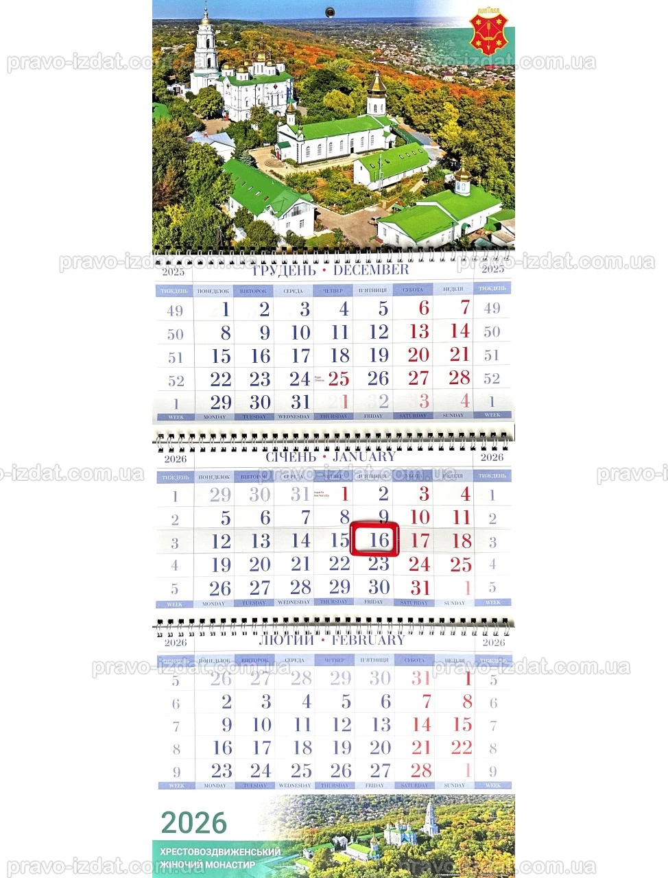 Замовте Календар квартальний 2026. Полтава. Хрестовоздвиженський жіночий монастир у Маріуполі, Слов'янську, Краматорську. Доставка зручною для Вас поштовою службою в Чернігів, Черкаси, Луцьк і Тернопіль – після оформлення замовлення наш менеджер зв’яжеться з Вами для підтвердження замовлення та даст відповіді на питання стосовно оплати та доставки.